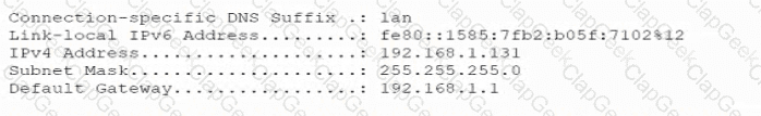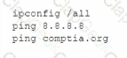 A user is unable to access the internet on a PC. A technician examines the PC and runs the following commands: