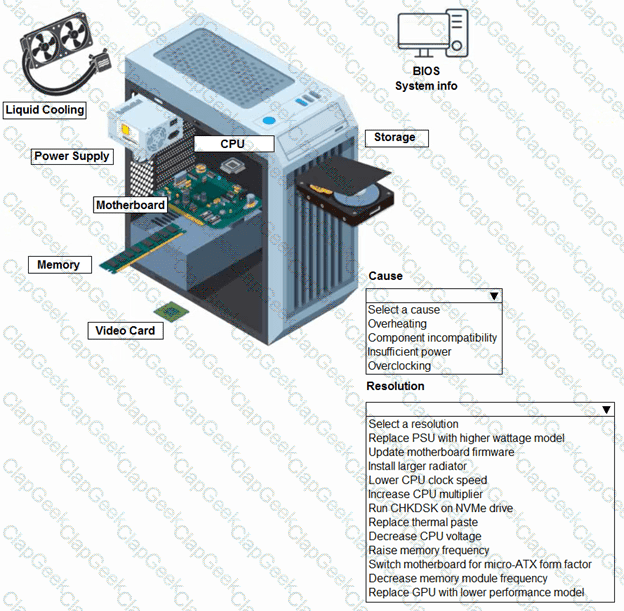An engineer is experiencing unexpected reboots on a graphics workstation when rendering complex 3-D models. The workstation is configured with a 115V power supply that is rated at 200W and connected to a UPS. The central processing unit contains 16 hyperthreaded cores, and a discrete graphics solution utilizing an 8-pin power connector is installed in a PCI Express x16 slot. Which of the following indicates where the technician should begin troubleshooting?