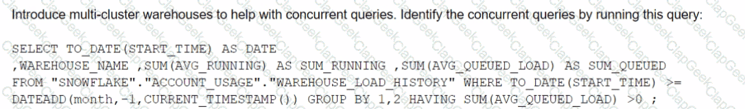 The Business Intelligence team reports that when some team members run queries for their dashboards in parallel with others, the query response time is getting significantly slower What can a Snowflake Architect do to identify what is occurring and troubleshoot this issue?
