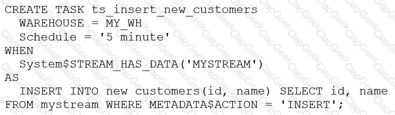 Assuming MY_WH is set to auto_suspend – 60 and used exclusively for this task, which statement is true?