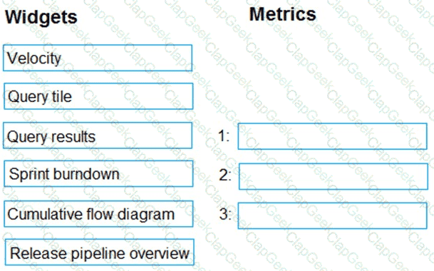 Which widget should you use for each metric? To answer, drag the appropriate widgets to the correct metrics. Each widgetmay be used once, more than once, or not at all. You may need to drag the split bar between panes or scroll to view content.