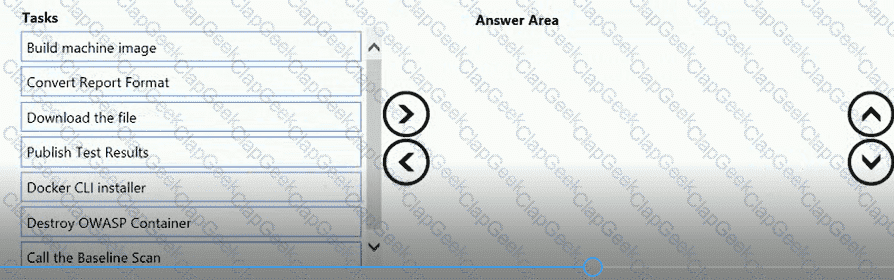 Which five Azure CLI tasks should you add insequence? To answer, move the tasks from the list of tasks to the answer area and arrange them in the correct order.