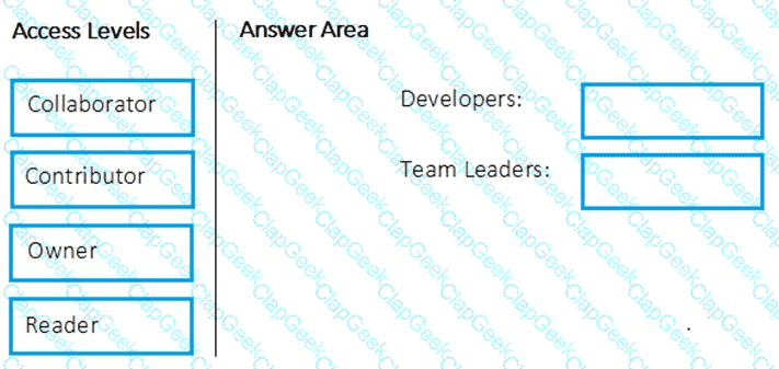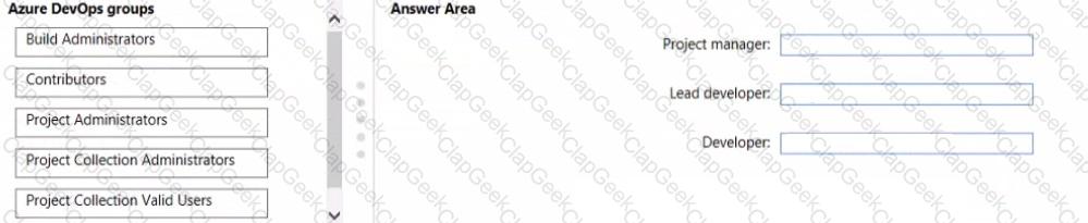 To which Azure DevOps groups should you add each team? To answer, drag the appropriate groups to the correct teams. Each group may beused once, more than once, or not at