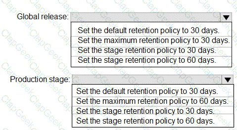 How should youconfigure the release retention policy for the investment planning applications suite? To answer, select the appropriate options in the answer area.