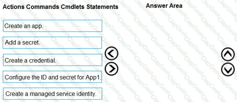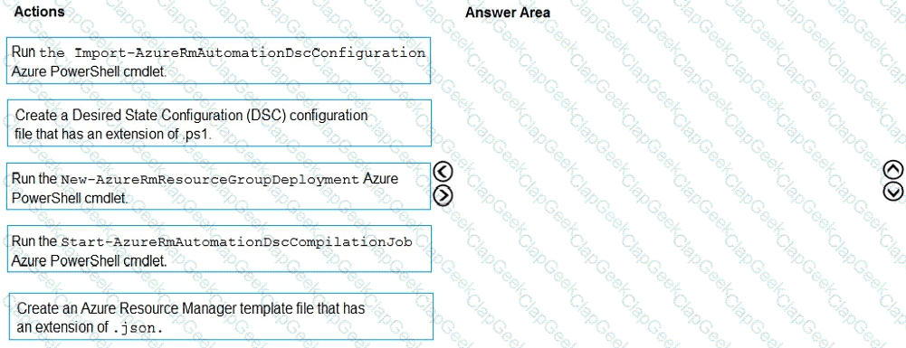 Whichthree actions should you perform in sequence? To answer, move the appropriate actions from the list of actions to the answer area and arrange them m the correct order.