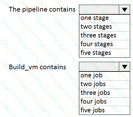 HOW should you complete the YAML definition? TO answer, select the appropriate options in the answer area.