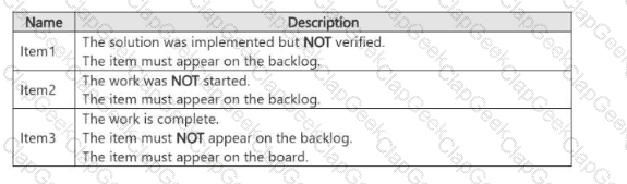 You are using Agile process methodologies and Azure Boards in Azure DevOps. You import the work items shown in the following table.