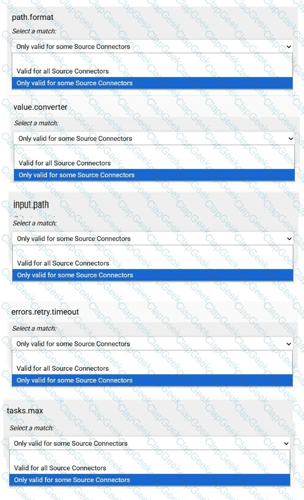 (Which configuration is valid for deploying a JDBC Source Connector to read all rows from the orders table and write them to the dbl-orders topic?)
