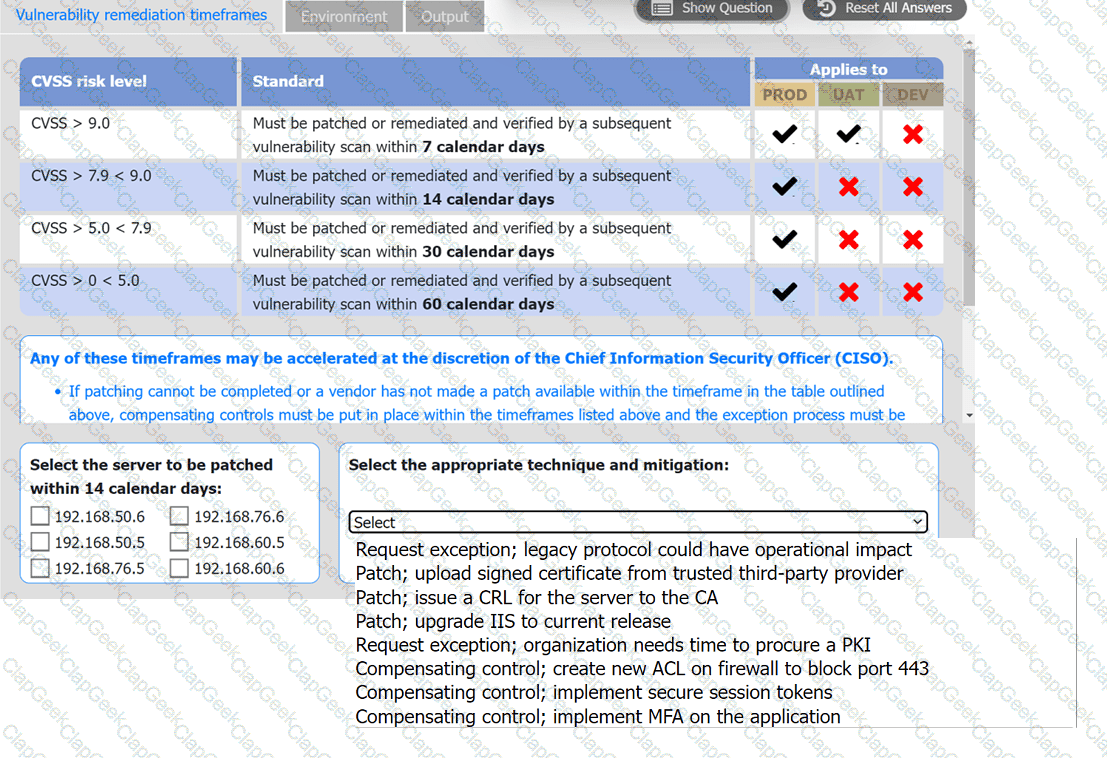 A company patches its servers using automation software. Remote SSH or RDP connections are allowed to the servers only from the service account used by the automation software. All servers are in an internal subnet without direct access to or from the internet. An analyst reviews the following vulnerability summary:
