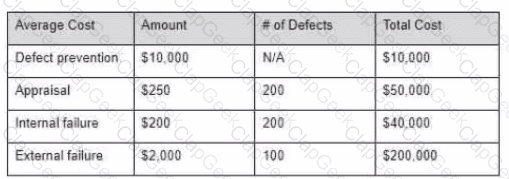 You have assembled the following cost of quality numbers 200 defects were found prior to release and 100 were found after.