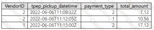 You have a Fabric eventhouse that contains a KQL database. The database contains a table named TaxiData that stores the following data.