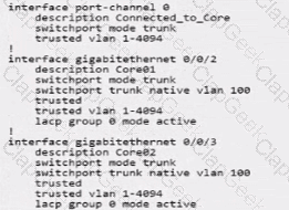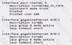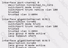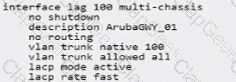 A campus topology uses VSX with a collapsed core topology. The customer added redundant SFP+ transceivers and reconfigured their mobility gateways from a single link to an aggregate Link. You are asked to verify the CLI output for the link aggregation configuration for one of the mobility gateway cluster members below.