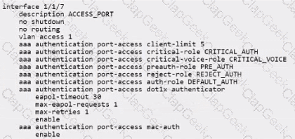 The customer provided the current configuration and reported their non-IoT 802.1X devices are no longer able to connect. Which configuration change can be made to fix the issue?