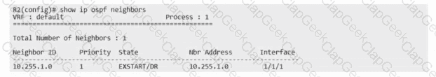 An engineer has applied the above configuration to R1 and R2. However, the router's OSPF adjacency never progresses past the "EXSTART/DR" state.