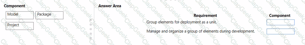 Which components should you use? To answer, drag the appropriate components to the correct requirements. Each component may be used once, more than once, or not at all. You may need to drag the split bar between panes or scroll to view content.