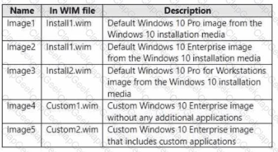 You have a Microsoft Deployment Toolkit (MDT) deployment share named Share 1. You add Windows 10 images to Share! as shown in the following table.
