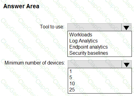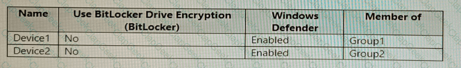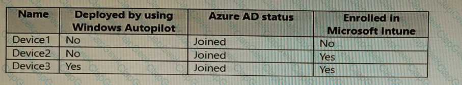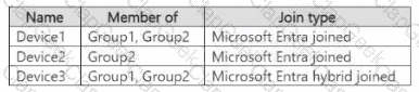 You have a Microsoft 365 E5 tenant that contains Windows devices enrolled in Microsoft Intune as shown in the following table.