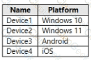 You have a Microsoft 365 subscription that contains the devices shown in the following table.