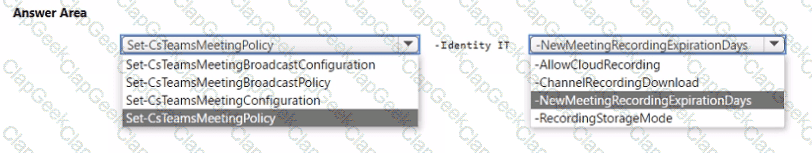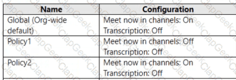 Solution: You create a teams policy and assign the policy to the users.