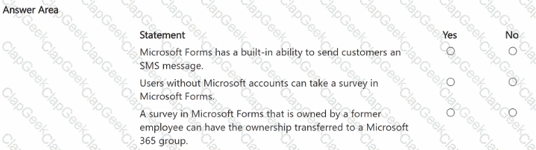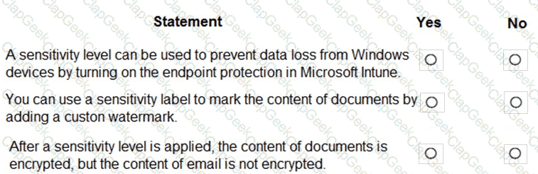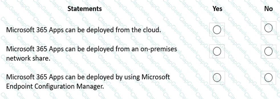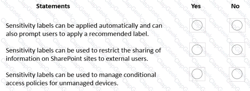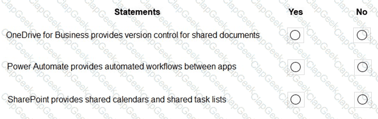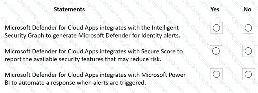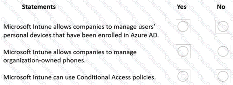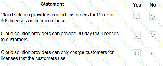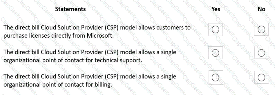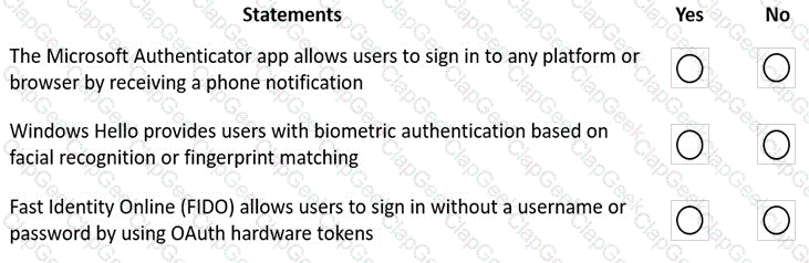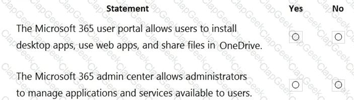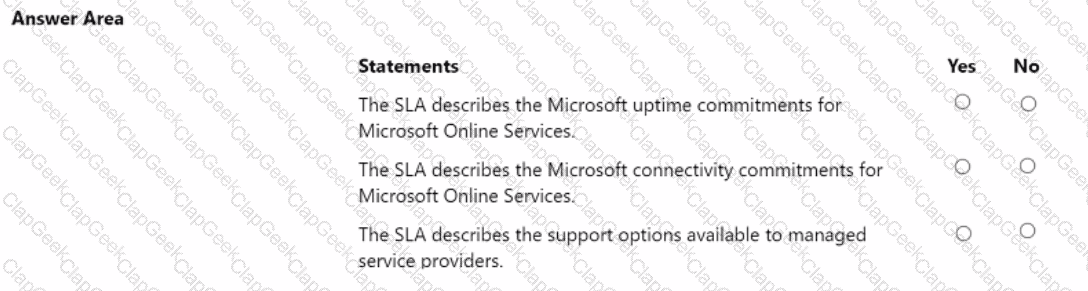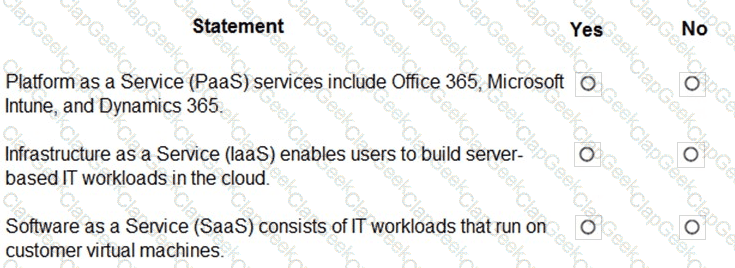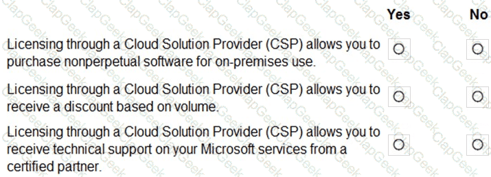 For each of the following statements, select Yes if the statement is true. Otherwise, select No.