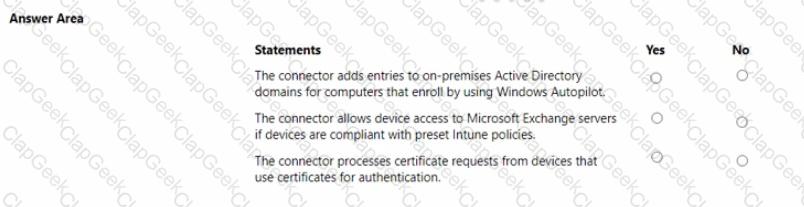 A company uses the Microsoft Intune Connector for Active Directory in Microsoft Endpoint Manager. Instructions: For each of the following statements, select Yes if the statement is true. Otherwise, select No.