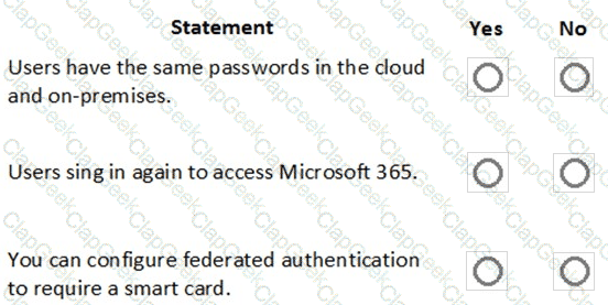 You are a Microsoft 365 administrator for a company. The company implements federated authentication.