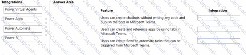 You need to recommend the Microsoft Power Platformintegration that provides the appropnate feature.