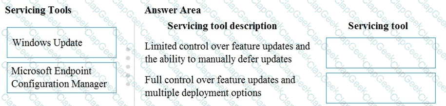 You need to identify which servicing tools the company should use for Windows 10.