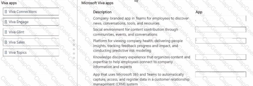 Match each app to its feature. To answer, move the appropriate Viva app from the column on the left to its description on the right.You may use each app once, more than once or not at all.