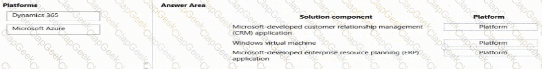 Which platform should you select? To answer,drag the appropriate platforms to the correct solution components. Each platform may be used once, more than once, or not at all. You may need to drag the split bar between panes or scroll to view content.