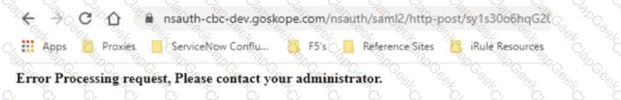 Netskope has been deployed using Cloud Explicit Proxy and PAC files. Authentication using Active Directory Federation Services (ADFS) has been configured for SAML Forward Proxy auth. When the users open their browser and try to go to a site, they receive the error shown in the exhibit.