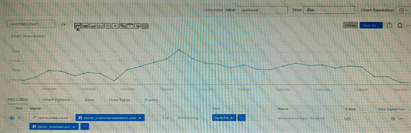 Given that the metric demo. trans. count is being sent at a 10 second native resolution, which of the following is an accurate description of the data markers displayed in the chart below?