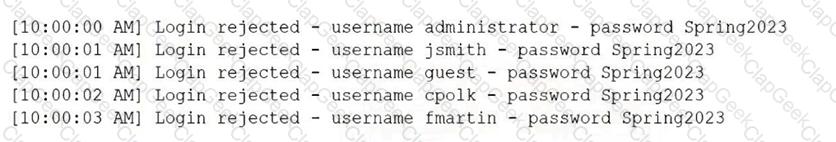 An administrator is reviewing a single server ' s security logs and discovers the following;