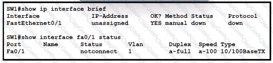The switches are connected via a Cat5 Ethernet cable that was successfully tested. The Interfaces are configured as access ports and are both in a 'down" status. What is the cause of this issue?