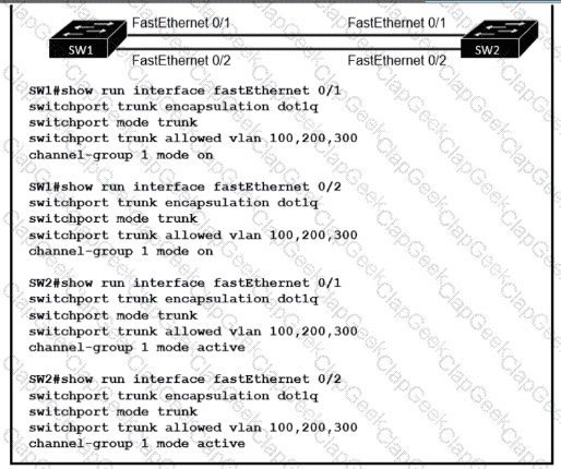 Refer to the exhibit. Which configuration enables SW2 to establish an LACP EtherChannel?