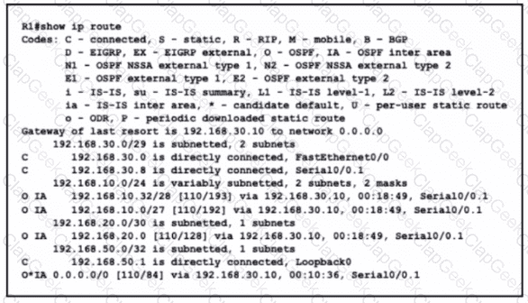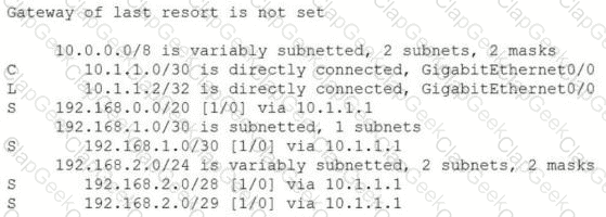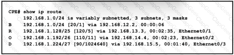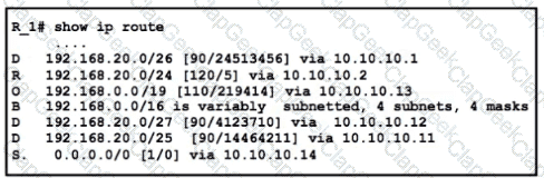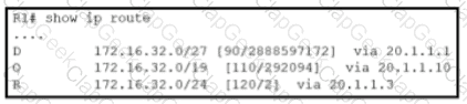 Refer to the exhibit. What is the administrative distance for the advertised prefix that includes the host IP address 192.168.20.1?