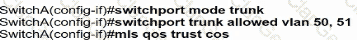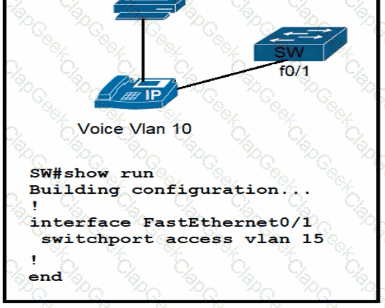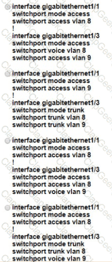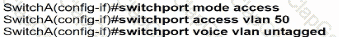 Switch A is newly configured. All VLANs are present in the VLAN database. The IP phone and PC A on Gi0/1 must be configured for the appropriate VLANs to establish connectivity between the PCs. Which command set fulfills the requirement?