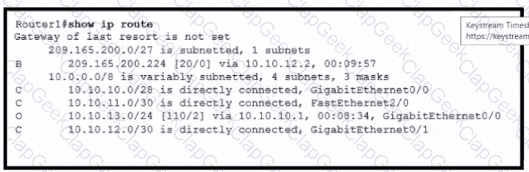 Packets received by the router from BGP enter via a serial interface at 209 165 201 1 Each route is present within the routing table Which interface is used to forward traffic with a destination IP of 10.1.1.19?