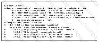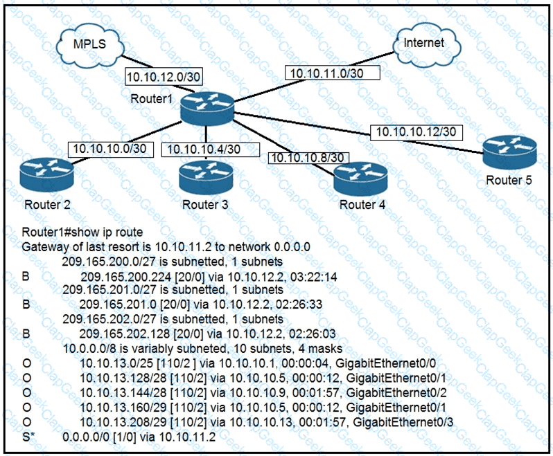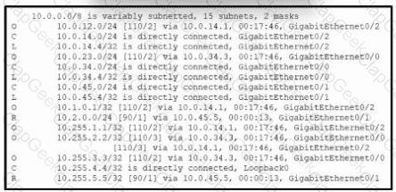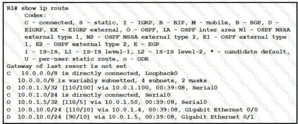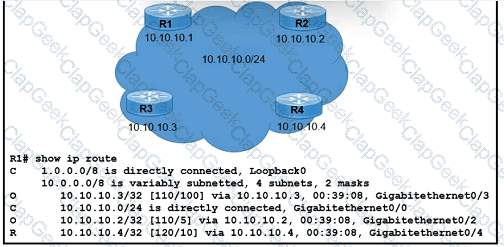 Router R1 resides in OSPF Area 0. After updating the R1 configuration to influence the paths that it will use to direct traffic, an engineer verified that each of the four Gigabit interfaces has the same route to 10.10.0.0/16. Which interface will R1 choose to send traffic to reach the route?