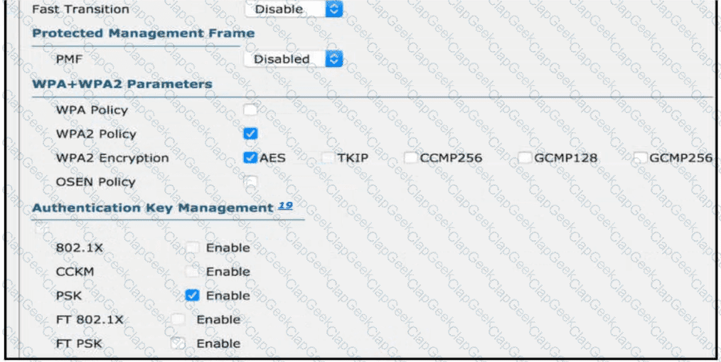 An engineer must document all Wi-Fi services on a new wireless LAN controller. The Wi-Fi SSID "Office_WLan" has Layer 2 Security. What is determined by this configuration?