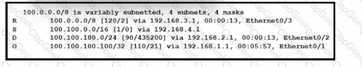 Refer to the exhibit. How will the device handle a packet destined to IP address 100.100.100.100?