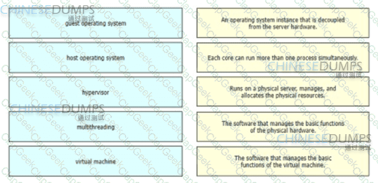Drag and drop the virtualization concepts from the left onto the matching statements on the right.