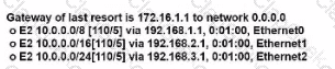 Refer to the exhibit. Which interface does a packet take to reach the destination address of 10.10.10.147?