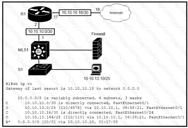 Refer to the exhibit. R1 has taken the DROTHER role in the OSPF DR/BDR election process. Which configuration must an engineer implement so that R1 is elected as the DR?