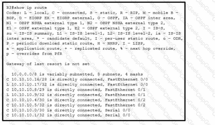 A router received three destination prefixes:10.0.0/18, and 10.0.0/24. When the show ip route command is executed, which output does it return?