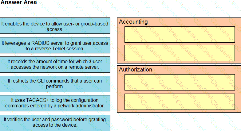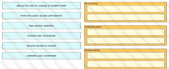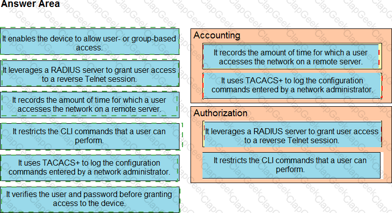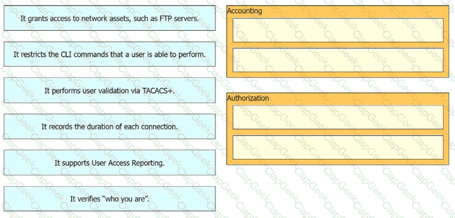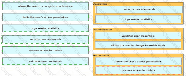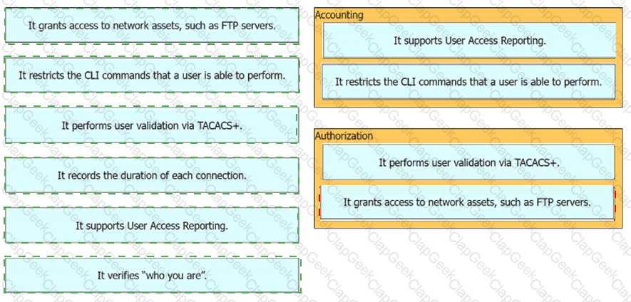 Drag and drop the statement about AAA services from the left to the corresponding AAA services on the right.