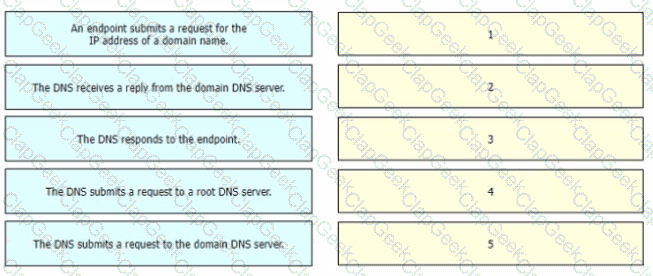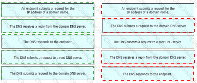 Drag and drop the steps in a standard DNS lookup operation from the left into the order on the right.