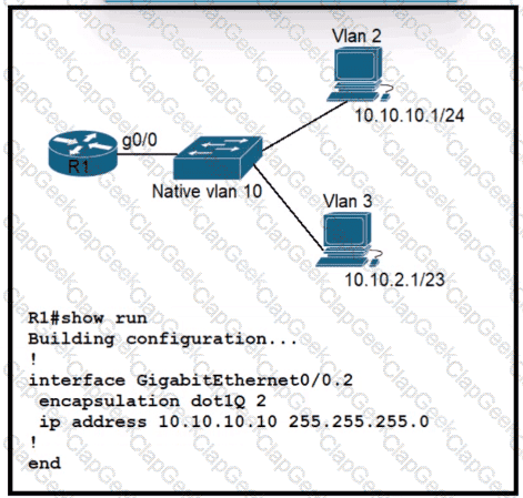 Which configuration must be applied so that VLANs 2 and 3 communicate back and forth?