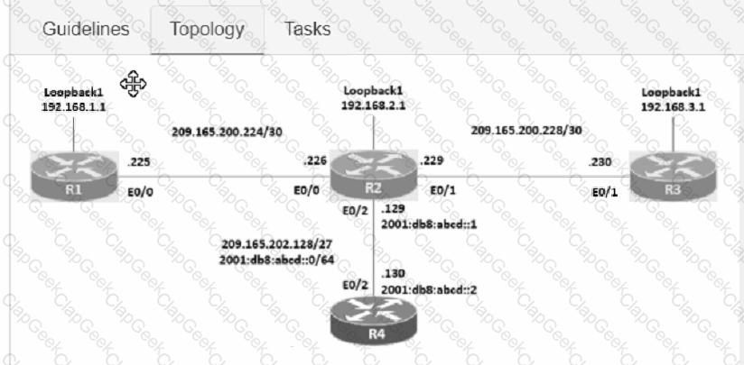 1. Configure R1 and R2 Router IDs using the interface IP addresses from the link that is shared between them.