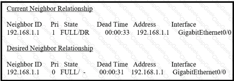 Which two configurations must the engineer apply on this network so that R1 becomes the DR? (Choose two.)